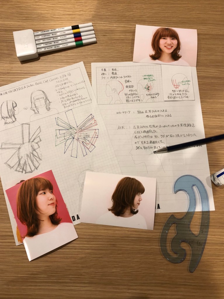 毎日コツコツと色々なスタイルを紙の上で分析し展開図を平面と立体で描いてトレーニングして実際に切っていきます。